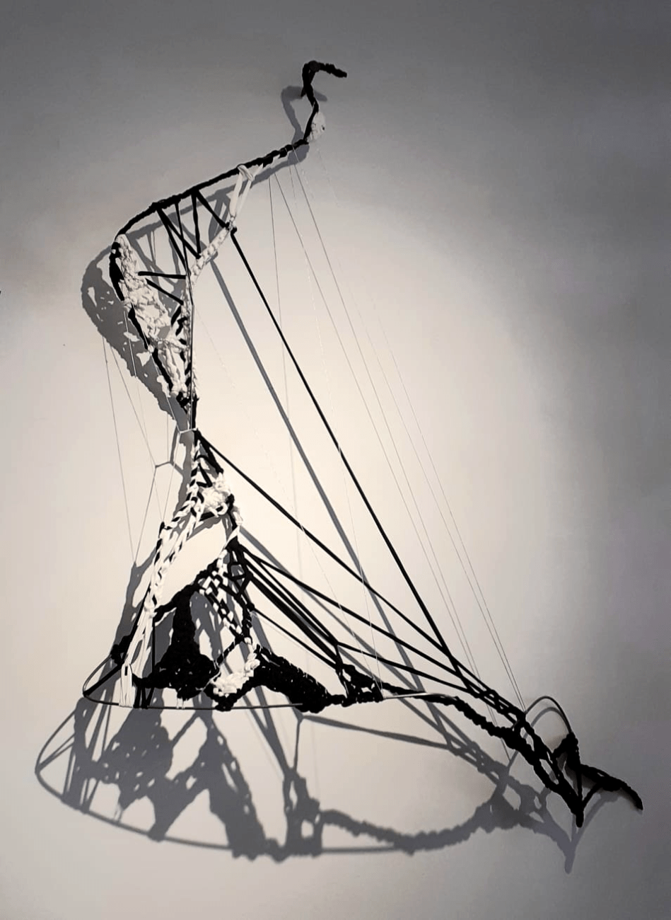 Titolo: Legami impreziositi Misure: cm 135*110 *23 Materiale: Fettuccia cotone, anima in ferro