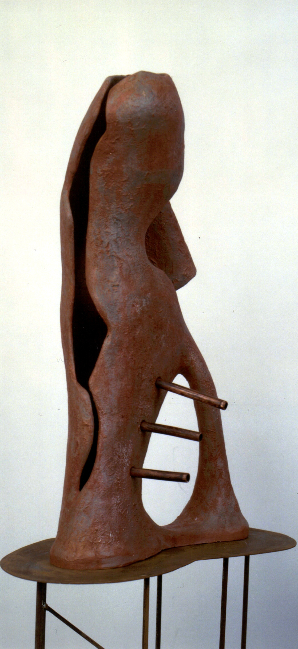 Terracotta ingobbiata – tubi di rame – base in ferro (Kilarski) – 2001 - cm38x18x64