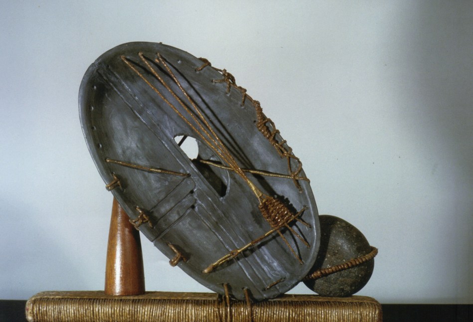 Terracotta ingobbiata , corda, legno, filo, ottone, pietra di antonio – 1997 – cm8x40x35